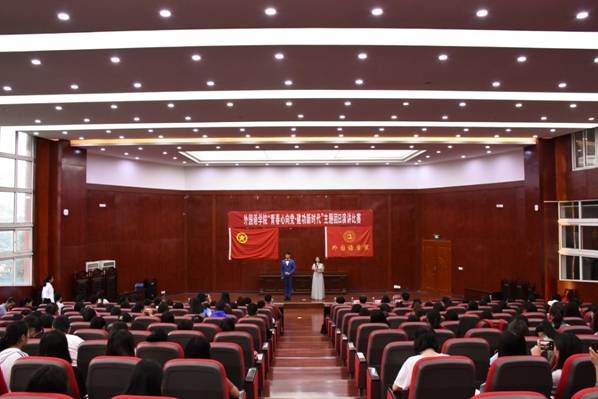 为了进一步学习贯彻落实习近平总书记在纪念五四运动100周年大会上的重要讲话精神,强化青年团员对“六点要求”的认识,我院于2019年5月22日晚上7点举行了“青春心向党•建功新时代”主题团日演讲比赛。多米官网平台_多米(中国)一站式服务官网党委书记贺云、副书记邓维赢、副院长禄颖、校团委副书记胡斌出席了此次活动,由多米官网平台_多米(中国)一站式服务官网胡凌老师、张妮老师、王梦菁老师、辛雅婷老师担任了本次比赛的评委。