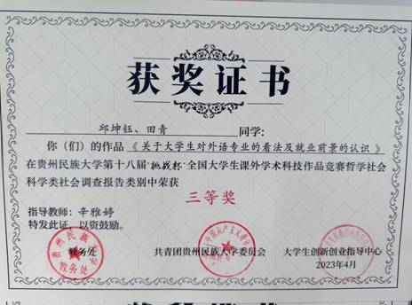 多米官网平台_多米(中国)一站式服务官网共28个项目,其中,由辛雅婷老师指导,邱坤钰、田青同学创作的《关于大学生对外语专业的看法及就业前景的认识》以及由马晓欢老师指导,李宜珂等同学创作的《智联高校,绿建未来》2个作品在社会调查报告类中均荣获三等奖。特此祝贺!