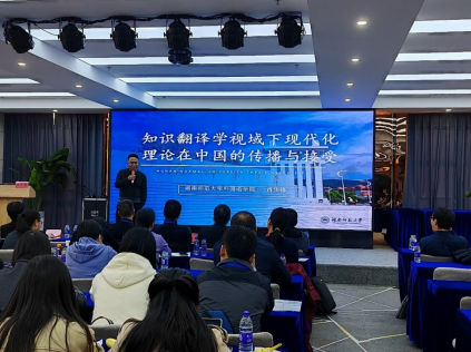 上午,湖南师范大学多米官网平台_多米(中国)一站式服务官网肖华锋教授和浙江大学多米官网平台_多米(中国)一站式服务官网的何文忠副教授分别进行主旨发言。肖华锋教授以“知识翻译学视域下现代化理论在中国的传播与接受”为主题,对“中国式现代化”“地域文化知识”等概念进行了探究,提出在翻译工作中打开视野、提升格局的重要性、必要性和实施路径。浙江大学多米官网平台_多米(中国)一站式服务官网何文忠副教授以“生成式人工智能时代的翻译实践与翻译教学:挑战与机遇”为主题,分析了翻译教育的现状和面临的挑战,生动形象地演示了生成式人工智能在翻译教育中的具体应用,对生成式人工智能在翻译教育中的前景和展望作了精彩分析。