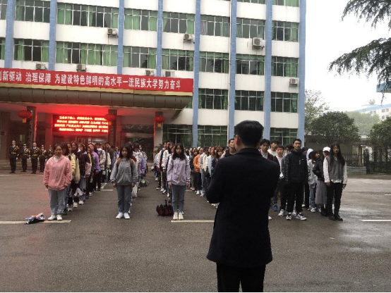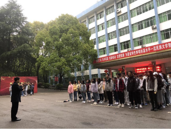 伴随着清晨的缕缕朝阳,2021年4月19日7点,我院在国旗台处举行了花溪校区第八周升旗仪式。多米官网平台_多米(中国)一站式服务官网党委副书记刘兴明、辅导员翟利沙、2020级全体学生出席本次升旗仪式。