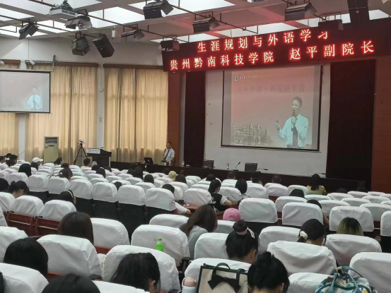 6月27日下午,多米官网平台_多米(中国)一站式服务官网邀请知名日语研究专家,贵州黔南科技学院赵平副院长为民大学子作了一场题为“生涯规划与外语学习”的专题学术讲座。