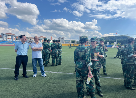 “同学们辛苦了,快喝点水降降温!”张广勇院长一边递出饮品,一边关切地询问大家的训练感受和身体状况。